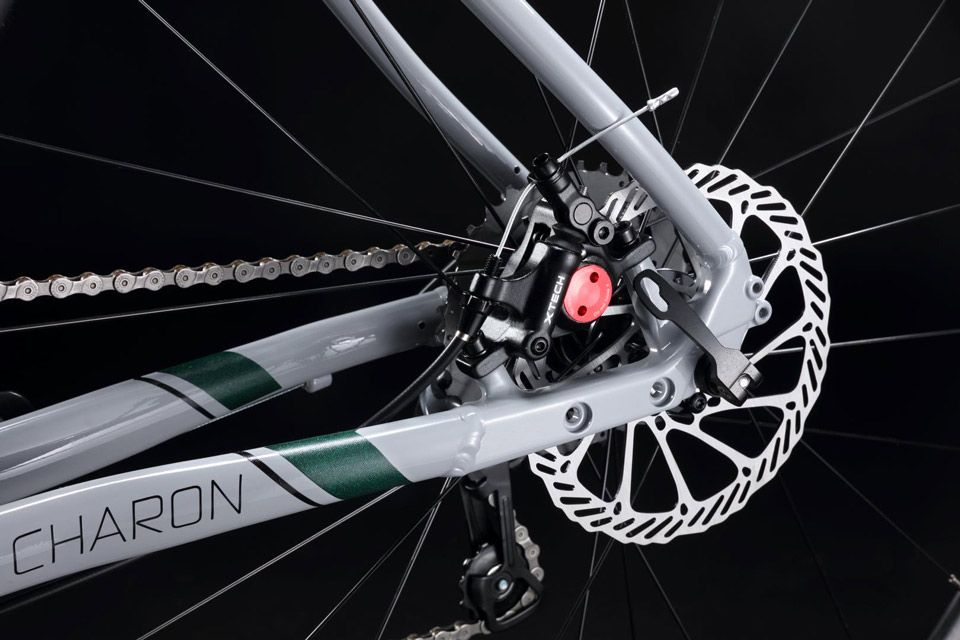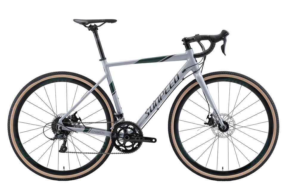 La Sunpeed Charon es el segundo modelo de la gama. Un cuadro desarrollado con aluminios livianos y horquilla de carbono, equipado con transmisión Shimano Sora 2×9, frenos a disco semi hidráulicos (un sistema de freno con manija mecánica, pero cáliper hidráulico, único en el país), ruedas Sunpeed con cubiertas CST 700×40 de cara blanca y manubrio especifico de gravel.