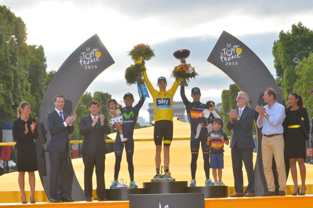 Froome fue el líder del Sky en estos tres últimos Tour. Ganó en 2013, las incontables caídas lo obligaron a abandonar en 2014, y en 2015 vuelve a llevarse el podio parisino. El jefe de filas del poderoso team Sky se vistió con el maillot amarillo en la séptima etapa y lo lució hasta la meta final en los Campos Elíseos de París, donde se impuso el alemán André Greipel en el sprint final, consiguiendo así su cuarta etapa en este Tour.