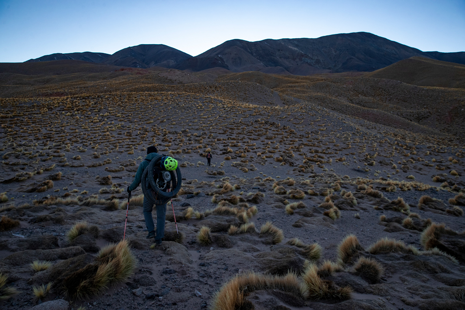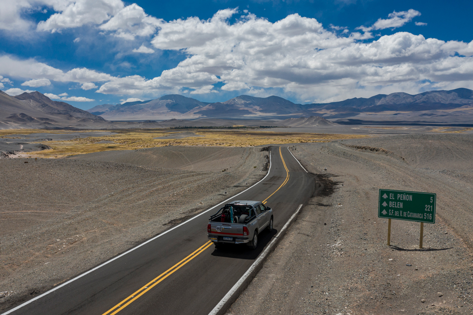 Después de un viaje de 9 horas finalmente llegamos a El Peñón, en la provincia de Catamarca, un pequeño pueblo donde el tiempo no importa y el viento sopla con fuerza sobre sus calles arenosas. Las 200 personas que viven allí ni siquiera tienen línea telefónica y durante la noche no hay electricidad. Nos quedaríamos un momento para acostumbrarnos a la altura, relajarnos del viaje viaje y contactar a un guía. La buena noticia fue que podríamos hacer la primera parte de la subida en un vehículo 4×4 y con ese viaje de 2 horas lograríamos evitar dormir una noche allí arriba, expuestos a fuertes vientos en una meseta sin fin.
