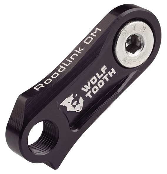 El nuevo Road Link DM de la empresa norteamericana Wolf Tooth adapta el montaje de los descarriladores Shimano de ruta para poder utilizar cassettes de máximo rango. El artilugio es compatible con la actual generación de descarriladores traseros Ultegra R8000 y Dura-Ace R9100. Está mecanizado CNC sobre aluminio 6061 T6 con hardware en acero inoxidable y hecho íntegramente en los Estados Unidos.